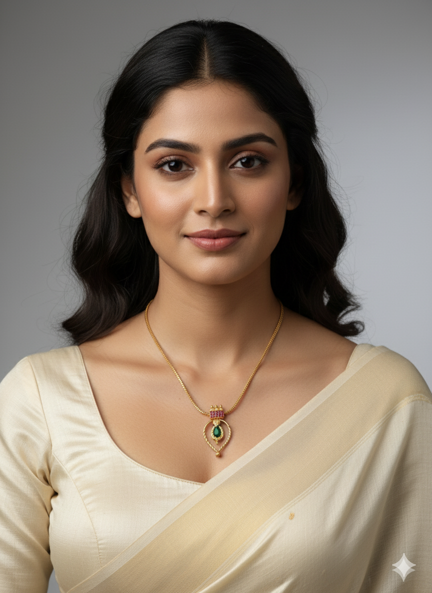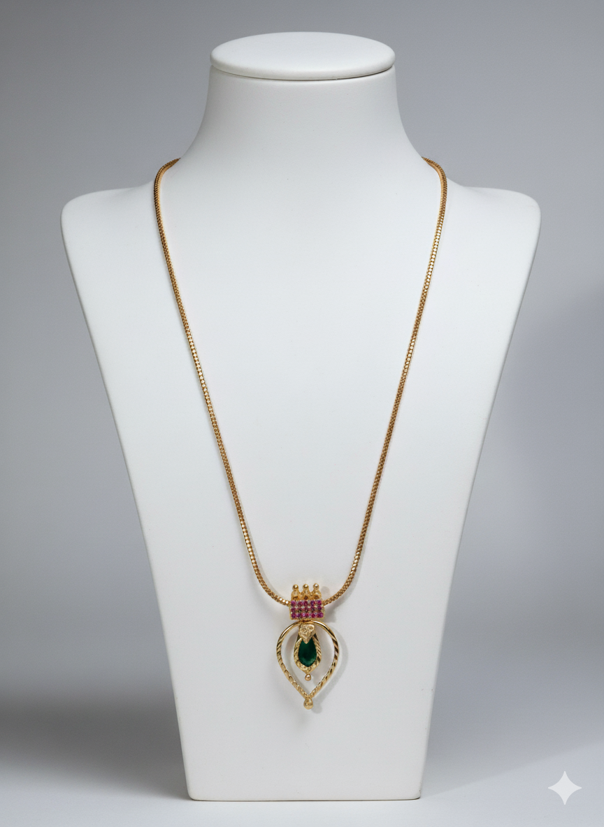 A treasured design in Kerala’s traditional jewelry, the Nagapadam is often worn during weddings, festivals, and temple ceremonies. This necklace pairs gracefully with sarees and ethnic attire, adding a touch of classic charm to your look.